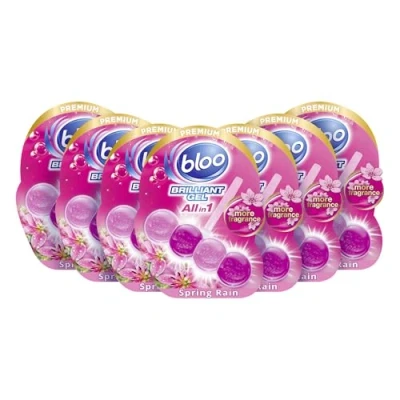Bloo Brilliant Gel All in 1 Toilet Rim Block Cleaner, Spring Rain Fresh Scent, for Around Cleanliness, Long Lasting Freshness and Shine Pack of 7