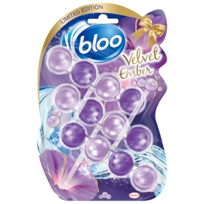 Bloo toilet care products provide cleanliness and freshness for your toilet at any time with less effort from your side! Clean the better Bloo way! Toilet Care - The Bloo Toilet Rim Blocks provide 24/7 freshness and dirt protection keeping the toilet clean and fresh for longer! 4-Function Formula – This toilet rim block provides Bloo's 4 Function Formula: cleaning foam, anti-limescale, dirt protection and long-lasting freshness Fresh Scent – Enjoy the Velvet Ember fragrance from this toilet rim block with every flush, which fills the bathroom with a long-lasting fresh scent Easy to Use – Simply open the pack, and hang one toilet rim block on the rim of the toilet where the water flow is the best