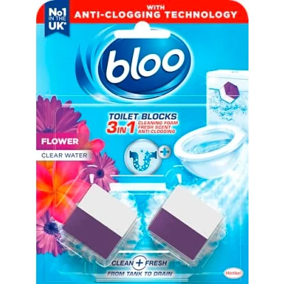 New: Our new Bloo Hygiene Toilet Blocks are formulated to keep your toilet clean and fresh Clean Plus Fresh: Bloo Hygiene Toilet Blocks provide Hygienic Freshness with its intense cleaning foam and fresh scent; Working from the cistern to the bowl and providing flowing blue water with every flush for visible cleaning Active against Limescale: Bloo Hygiene Toilet Blocks contain an active ingredient which prevents limescale formation Coloured Water: Bring colour to your bathroom and turn your toilet water blue with the Bloo Hygiene Toilet Blocks Longer lasting: The Bloo Hygiene Toilet Blocks provide up to 800 flushes