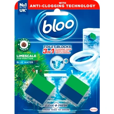 New: New Bloo toilet cistern blocks for stronger and longer lasting results to keep your loo fresh and clean. With additional limescale prevention action. Fresh and clean: Bloo toilet blocks give you a hygienically toilet cleaning foam from the cistern as well as foaming action and blue water with every flush. Toilet limescale remover: Bloo toilet cistern blocks create a strong foaming action to prevent limescale, keeping the loo hygienically clean in between deep cleans. Clean colour: Bring colour to your bathroom and turn your toilet water blue with the blue toilet blocks which freshen and target limescale between flushes. Long Lasting: The blue toilet stain remover block lasts for multiple flushes, up to 800 flushes (4 weeks per block) of cleaning and foaming blue water action.