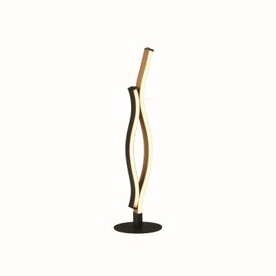 Bloom Swirl LED Table Lamp, Black With Wood Effect