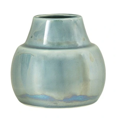 Very beautiful vase from the Bloomingville brand from the Paula collection The vase is made of ceramic in blue Bloomingville vase with a bluish iridescent finish is ideal for small bouquets or simply as a decoration Due to the nature of the glaze and the hand made of the item, color variations may occur Dimensions: 11 cm x 11 cm x 10.5 cm