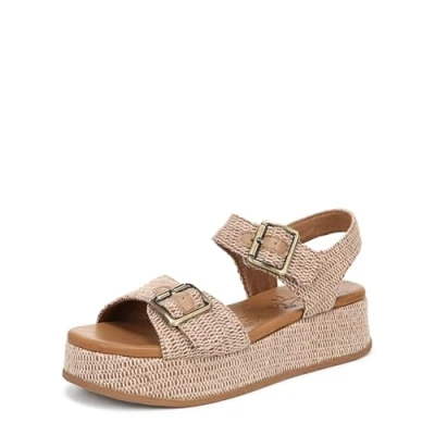 EASY-GOING HEIGHT: Enjoy a 1.25 inch platform and 1.5 inch heel that offers a subtle boost and stability for every step MODERN SLINGBACK STYLE: Two-band platform sandal with a wide faux leather upper and decorative metal buckles for chic, California-cool appeal BREATHABLE COMFORT: Open toe design and smooth footbed help keep you cool and comfortable all day long ADJUSTABLE STRAPS: Side buckle closure allows for a personalized fit in these versatile women's sandals with a platform heel TRACTION SOLES: Cork-wrapped platform with a sturdy TPR outsole for long-lasting wear and slip-resistance
