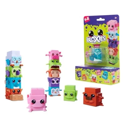 BLOXIES 4 Pack Blind Collectible Stackable, collectable Mini animal Friends, building blocks with moving feature, cute designs, fidget toy, 18 to collect, Multicolour, suitable for ages 3+