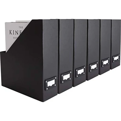 Keep Your Desk Organized: This set of 6 foldable magazine file holders is perfect for organizing magazines, files, papers, notebooks, and other office supplies, helping you maintain a tidy workspace. Durable & Sturdy Construction: Made from high-quality cardboard, these magazine holders are built to withstand regular use, providing long-lasting storage solutions. Sleek Black Design: The set includes 6 black holders with matching black label holders, adding a sleek and sophisticated touch to your office or workspace. Space-Saving & Convenient: These foldable magazine storage boxes are easy to assemble and can be conveniently stored when not in use, offering flexibility and portability. Versatile Storage Solution: Ideal for organizing magazines, documents, mail, and letters. Use them on desks, shelves, or in closets to keep your items neatly stored and easily accessible.