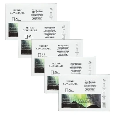 Blue Acorn 5 x A5 MDF Canvas Panel Triple Prime, Acid Free, 100% Premium Quality Art Perfect for Oil, Alkyd & Acrylic Colours