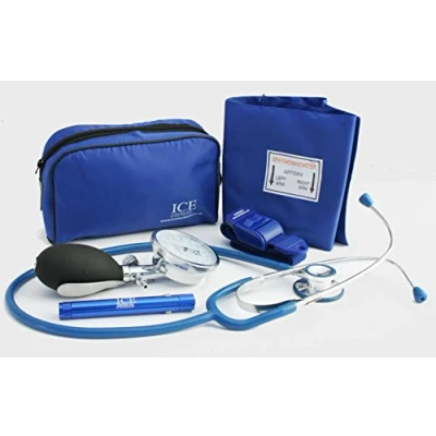 Blue Aneroid Blood Pressure Sphygmomanometer Monitor, Stethoscope, Pen Light (Pen Torch) and Tourniquet GP Set