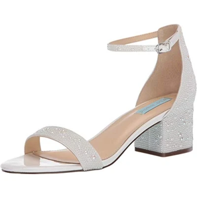 Something Blue by Betsey Johnson womens low block heel sandals Rhinestone embellishments in various sizes Round open toe design with adjustable buckle closure Synthetic lining and sole