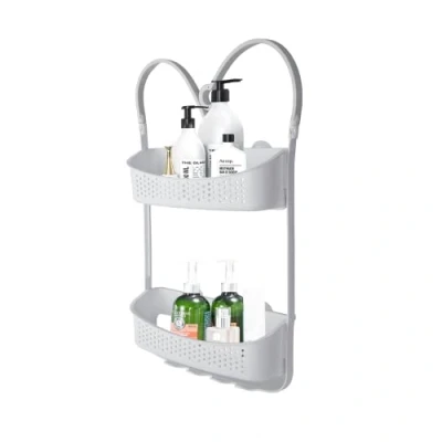 Blue Canyon Hanging Shower Caddy Single Basket, No Drill Bathroom Shelf, Non Rusting Storage Shelves, Accessory for Organisation Over Bath Basket (2 Tier White)