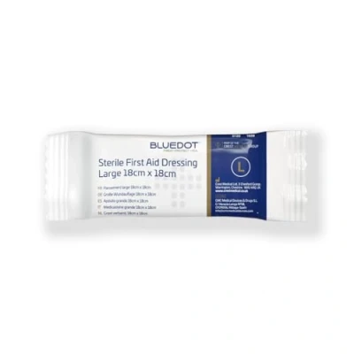 Blue Dot Sterile Flow Wrapped First Aid Dressing Pad, 18 cm Length x Width