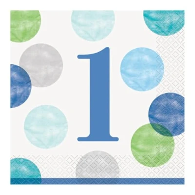 Blue Dots 1st Birthday Luncheon Napkins (16cm) Perfect for First Celebrations 16ct