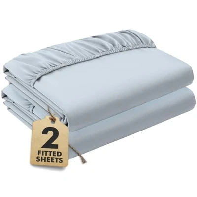 Blue Grey Fitted Sheet Single Beds (90x190 cm, Deep 35 cm) Pack of 2 Soft Microfibre Elasticated Cover Breathable, Durable & Easy Care Bottom