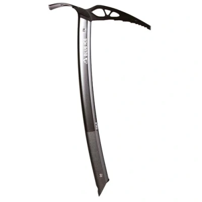 Chromoly steel head Aircraft-grade anodized, sandblasted aluminum curved shaft Dual-textured grip Pick and adze and protectors included Ideal for Ski touring, classic ski mountaineering