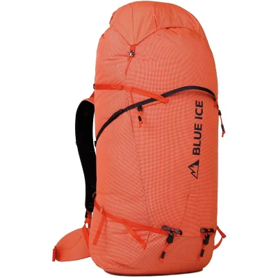 The Blue Ice Stache 90 is a large expedition alpine climbing pack dedicated to committed alpinists looking for extreme weight-savings, performance and versatility to achieve ambitious projects in the most demanding environments on the planet.In addition to being very light and supporting heavy loads while being comfortable to carry, it can also be stripped down to be used during the ascent. A steal for all those looking for ultimate versatility and minimalism. The pack can be adjusted to the load and volumes requirements during an expedition.The optimized fit and carry structure handles heavy loads extremely well, while remaining comfortable when climbing. It can be stripped down by approx 200g. The materials used ensure an incredible weight/strength ratio and are ultra-resistant to UV radiation, which is very present at high altitude. The Stache was used and tested in high altitude environments by several of Blue Ice's athletes and professional mountain partners. Their feedback was applied to find the perfect balance between being light weight and versatile.Weight: 920 g/ 700 g Summit Weight (steel Frame, frame sheet and lid are to be removed to reach the minimum weight)Volume: 90LDimensions: 90x40x40 cm