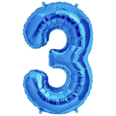 Blue Number 3 Foil Balloon, 101cm