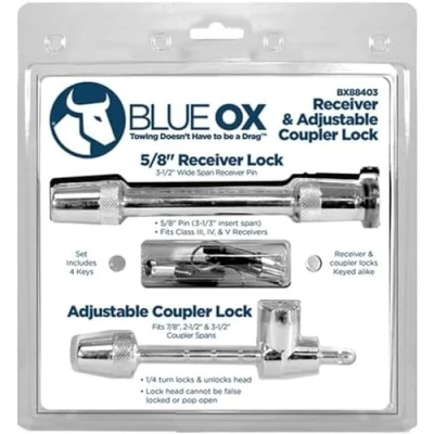 Pin-style coupler lock and 5/8" receiver lock kit 5/8" receiver lock fits spans up to 3-1/2" Adjustable 7/8" pin-style coupler lock fits 2-1/2" and 3-1/2" spans Set includes 4 keyed-alike keys