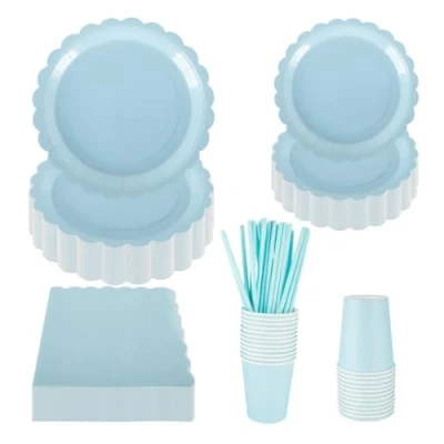 Blue Party Tableware Set, 125PCS Baby Paper Plates and Napkins, Disposable Set 25 Guests, Decorations for Table
