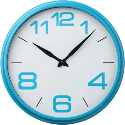 General description The vibrant blue wall clock is a stylish addition to your home, providing a practical way to keep track of time. Made from durable yet lightweight plastic, this colorful clock is designed to last. The crisp white dial contrasts beautifully with the blue frame, featuring matching blue numbers and black hands for easy readability, even at a glance. Ideal for use in bedrooms or kitchens, this clock creates a striking feature on any wall.