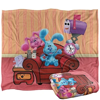 BLUES CLUES SILKY TOUCH BLANKET - 300 GSM fabric provides warmth and comfort yet is lightweight and breathable, that will make a great decorative addition to any room SHRINK & FADE RESISTANT - This design has amazing color vibrancy and is crafted from 100% polyester that is super soft and long lasting SIZE: 152 x 127 cm - Microfiber fleece fabric with double overlock stitch to create ultra-fluffiness and durability; machine washable; tumble dry low The designs are created by our incredibly talented in house graphic art team who often hand draw and illustrate each design GREAT FOR GIVING - The optimal gift for the littlest fan in your life, our high quality collectible merchandise brings the finishing touch to themed events, parties, birthdays, holidays, baby showers, and special occasions