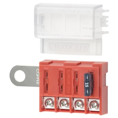 Blue Sea Systems 5023 ST Blade Battery Terminal Fuse Block 4 Circuit with Cover, Beige