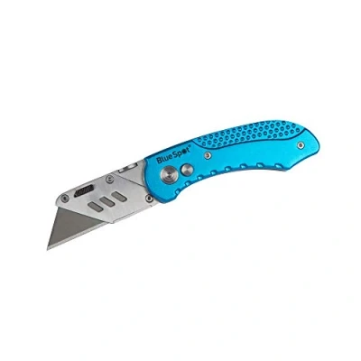 Manufactured from zinc alloy for increased durability One-handed locking button opens and folds away the blade for increased safety Features pocket clip for convenient carrying And easy blade change button. Suitable for use with standard utility blades Includes 1 SK5 utility blade, Weight: 0.31 Pounds, Manufacturer: BlueSpot Tools