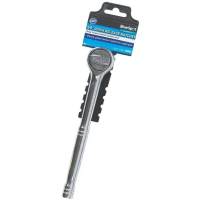 General description The Blue Spot Tools 3/8' Quick Release Push Ratchet is designed for efficiency and ease of use. This ratchet features a quick-release mechanism that allows for fast socket changes, making it ideal for both professional and DIY applications. Technical specifications Drive size: 3/8 inch Length: 250 mm Material: Chrome vanadium steel Finish: Chrome plated Teeth count: 72 Usage This ratchet is perfect for a variety of tasks, including automotive repairs, home improvement projects, and general maintenance. Its quick-release feature allows for swift socket changes, enhancing productivity. Other information For more details, you can view the product images and videos available online.