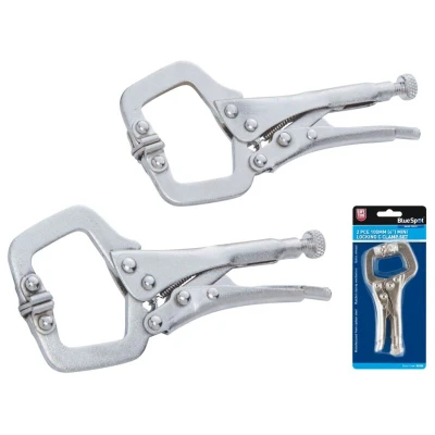 BlueSpot 2 Pce 100mm (4�) Mini Locking C Clamp Set The BlueSpot 2 Pce 100mm (4�) Mini Locking C Clamp Set is manufactured from nickel plated steel for increased durability. The clamp has a quick release for easy deployment and adjustment. The jaws have flat faces mounted on a swivel pad for increased precision and stability with uneven workpieces. To activate the manufacturers lifetime guarantee, you will need to register the product on the Bluespot website within 30 days of purchase.