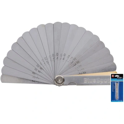 General description The Blue Spot Tools 32 Blade Feeler Gauge is an essential tool for precise measurements in various applications. It features 32 blades made from high-quality stainless steel, ensuring durability and accuracy. This gauge is perfect for measuring gaps and clearances in automotive, mechanical, and engineering tasks. Technical specifications Number of blades: 32 Material: Stainless steel Blade thickness: 0.1 mm to 1.0 mm Blade width: 6 mm Usage The feeler gauge is designed for measuring the gap between two surfaces. It can be used in various applications, including: Automotive engine adjustments Setting valve clearances Measuring gaps in machinery Other information For visual reference, please check the product images and videos available online.