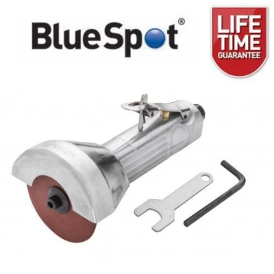 General description The Bluespot Air Cut Off Tool is a robust tool designed for both professional and home use. It is ideal for cutting a wide range of materials, including radiator hoses, sheet metal, and exhausts. Technical specifications Free speed: 18,000 rpm Operating pressure: 90 PSI (6.2 bar) Average air consumption: 4 CFM (114 L/min) Inlet size: 1/4" BSP Compatibility and accessories Compatible with 3" cut off discs (19670)