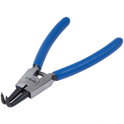 General description The BlueSpot External Circlip Pliers are designed for installing and removing external circlips. Manufactured from durable chrome vanadium steel, they offer strength and longevity. The tips are chemically blackened to avoid corrosion, while the handles are fitted with a non-slip, cushioned vinyl coating for comfort and grip. The 90° angled tips allow for increased visibility and precision in hard-to-reach areas. Technical specifications Material: Chrome vanadium steel Tip angle: 90° Length: 150mm (6in)