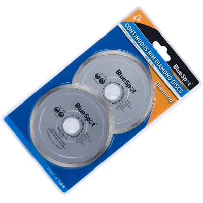 General description The Blue Spot Tools 2 Piece Continuous Rim 115mm (4.5') Diamond Discs are designed for precision cutting and grinding of various materials. These high-quality diamond discs are ideal for use on tiles, ceramics, and other hard surfaces, providing a smooth finish and efficient performance. Technical specifications Diameter: 115mm (4.5') Type: Continuous rim Quantity: 2 discs Usage These diamond discs are suitable for both professional and DIY applications. They can be used with angle grinders and are perfect for cutting and grinding tasks that require a clean and precise edge.