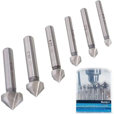 General description The Blue Spot Tools 6 Piece HSS Countersink Set is designed for precision drilling and countersinking in various materials. This set includes six high-speed steel (HSS) countersinks, ranging from 6.3mm to 20.5mm, making it ideal for both professional and DIY projects. Technical specifications Material: High-Speed Steel (HSS) Sizes included: 6.3mm, 8.5mm, 10.5mm, 12.5mm, 16.5mm, 20.5mm Usage This countersink set is perfect for creating a conical hole for screws, allowing them to sit flush with the surface. It can be used on various materials, including wood, plastic, and soft metals.