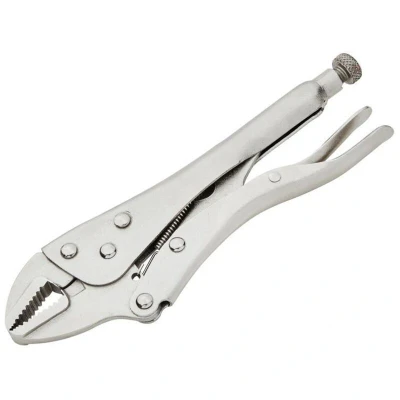 ManoManoGeneral description The BlueSpot Quick-Release Straight Jaw Locking Pliers are designed for durability and versatility. Made from nickel-plated steel, these pliers feature an adjustable jaw opening and clamping pressure, ensuring a firm and constant hold on various workpieces. The guarded lock release mechanism enhances safety during operation. Technical specifications Length: 250mm (10 inches)