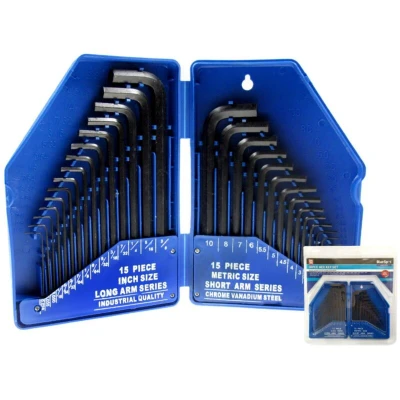 BlueSpot 30 Pce Hex Key Set The BlueSpot 30 Piece Metric and Imperial Chrome Vanadium Hex Key Set is manufactured from chrome vanadium steel for increased durability. Includes handy carrying case for quick and convenient storage. Package Contents - Metric hex keys: 0.7, 0.9, 1.3, 1.5, 2, 2.5, 3, 4, 4.5, 5, 5.5, 6, 7, 8 & 10mm. Imperial hex keys: 0.028", 0.035", 0.050", 1/16", 5/64", 3/32", 7/64", 1/8", 9/64", 5/32", 3/16", 7/32", 1/4", 5/16" & 3/8". To activate the manufacturers lifetime guarantee, you will need to register the product on the Bluespot website within 30 days of purchase.