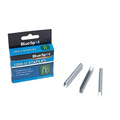 Suitable for use with 12mm u-shape staple guns Each box contains 1000 u-shape staples Leg length: 12mm Crown: 6.5mm Wire: 1.2 mm, Manufacturer: Blue Spot