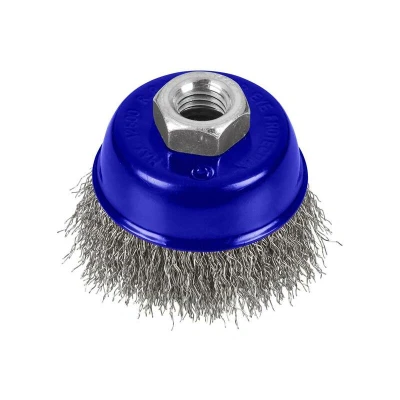 General description This BlueSpot Tools Steel Wire Cup Brush is designed for cleaning and preparing metal surfaces. It features hardened steel wires for increased durability and effective removal of rust, paint, and debris. Ideal for preparing metal surfaces for welding and painting, this brush is suitable for use with angle grinders, helping to improve surface quality for various tasks. Technical specifications Wire thickness: 0.3mm Diameter: 65mm (2 1/2 inches) Fitting: M14 x 2 Maximum safe speed: 12,500 RPM Compatibility and accessories Compatible with standard angle grinders with M14 spindle Suitable for metal surfaces and cleaning applications Installation Ensure the grinder is unplugged before installation Attach the cup brush securely to the grinder's M14 spindle Check that the brush is properly fixed before use Usage Wear appropriate safety gear, including gloves and eye protection Operate at recommended speeds to avoid damage or accidents Use the brush to clean rust, paint,