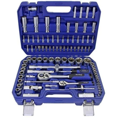 The BlueSpot Tools 1/2in & 1/4in Metric Socket Set is expertly crafted for both professional and DIY enthusiasts, made from heat-treated chrome vanadium to ensure maximum durability and longevity. This comprehensive socket set is designed to meet a wide array of mechanical needs, featuring knurled sockets that provide a secure grip, making it easier to work on different applications.