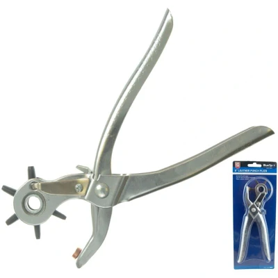 General description This leather punch plier is designed for punching holes in various materials such as leather, plastic, and paper. It features a revolving head with multiple punch sizes, making it versatile for different projects. Technical specifications Length: 200mm (8 inches) Punch Sizes: 2.0mm, 2.5mm, 2.8mm, 3.2mm, 4.0mm, and 4.8mm Material: A3 steel Installation No installation required; ready to use out of the box Usage Rotate the head to select the desired punch size Position the material and squeeze the handles to punch a hole Other information Designed for durability and ease of use