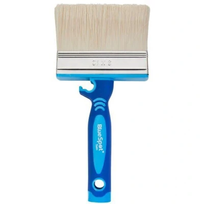General description The BlueSpot Tool Shed and Fence Brush is designed for painting and treating exterior wood surfaces such as sheds and fences. It ensures even paint application and is suitable for all types of exterior paints and timber treatments. The brush features a soft grip handle with a steel ferrule for durability and corrosion resistance, and it is easy to clean and maintain. Technical specifications Size: 120mm (4.7 inches) Compatibility and accessories Compatible with all exterior paints and timber treatments Installation No installation required; simply use the brush for painting or treating surfaces Usage Apply exterior paints or timber treatments to sheds, fences, and other outdoor wood surfaces Ensure even coverage by loading the brush properly and working in smooth strokes