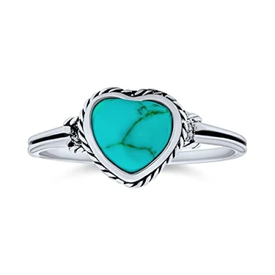 Blue Stabilized Turquoise Bezel Heart Ring For Women Teen Girlfriend .925 Sterling Silver December Birthstone