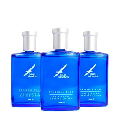 Blue Stratos Pre Electric Shave Lotion Multi Pack, Original for Men, Lifts Beard & Reduces Irritation, Cooling Effect, Classic Scent of Cedarwood, Vanilla, and Musk (3 PACK)