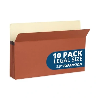 3.25” expansion for ample storage capacity Redrope material for durability and style Legal size to fit 8.5” x 14” documents Includes 10 folders for comprehensive organization Thick redrope panels and reinforced gussets for lasting durability