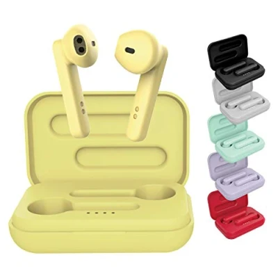 BlueElement Pop Bluetooth Headphones 5.0 TWS Wireless 3D Stereo Sound HD 6H Battery Life LED Charging Case, Easy to Connect, Built in Microphone, Comfortable for iPhone/Android (Yellow)
