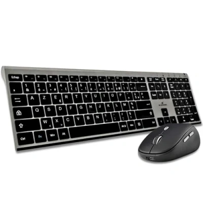 CONVENIENT The keyboard and mouse are wireless, with a unique smart dongle. They are rechargeable via an included micro USB cable. The batteries guarantee a maximum battery life of up to 3 months on one charge Be Smart: In addition to the ultra-thin structure, the keyboard is underlined by a metal plate, which gives it strength and elegance. The matte grey finish blends perfectly into your working world. Comfortable: With the scissor keys, this extended keyboard is designed for maximum comfort at work and at home. Together with the keyboard, the ergonomics of the mouse have been developed for an optimal grip. Its quiet clicks allow you to work in peace. Productive: The keyboard offers 16 multimedia shortcuts, indicator lights and an on/off button for convenient and fast use. The sensitivity of the mouse is adjustable up to 1600 DPI with one click thanks to the dedicated button. EASY TO USE Included is the micro USB charging cable and a screen protector protects your keyboard from splashes for always comfortable and durable use. Compatible with Windows.