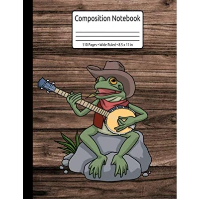 Bluegrass Banjo Country Music Cowboy Gifts Frog Composition Notebook 110 Pages Wide Ruled 8.5 x 11 in: Stringband & Journal