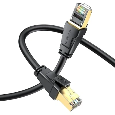 ➤ CAT8 GIGABIT ETHERNET CABLE: BlueRigger CAT 8 Gigabit Network LAN Cable supports up to 40Gbps data transfer and 2000MHz bandwidth. Connect your LAN/WAN segments and networking gear at maximum speed ➤ UNIVERSAL COMPATIBILITY: Compatible with game consoles, laptops, PCs, raspberry Pi 4, routers, WiFi extenders, Wi-Fi Mesh, network switch, PoE devices, smart TV, BT smart hub, network adapters, patch panel, network printers, TV box, NAS, VoIP phones with RJ45 input ➤ EXTRAORDINARY PERFORMANCE: Superfast data transfer for server applications, cloud computing, online high definition video streaming, video surveillance and more. Compatible with AI smart products such as Alexa, Google Home, Apple Siri that require high speed network ➤ SUPERIOR BUILD: Double Aluminum shielded twisted pairs (STP) and 100% pure copper help minimize interference. Snagless design, 26AWG cable thickness, strain-relief boots and 50 micron gold plated RJ45 connectors provide durability and ensure a secure connection ➤ WARRANTY & TESTING: Fluke certified. TIA, Reach, RoHS compliant. BlueRigger Lifetime Warranty and US-based Customer Support