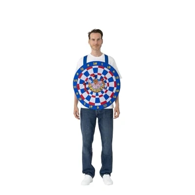 AmazonOfficial Bullseye Merchandise: Authentic dartboard tabard from the iconic 80s TV show Bullseye Interactive Fun: Comes complete with 3 Velcro balls – challenge friends to hit the bullseye! One Size Fits Most: Easy slip-on tabard design fits most adults comfortably over everyday clothing Perfect for Parties & Events: Ideal for retro TV nights, fancy dress parties, stag dos, or charity events Lightweight & Comfortable: Soft fabric with adjustable straps for all-day wear