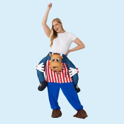 AmazonOfficial Bullseye Merchandise – Fully licensed and approved, featuring the signature red & white stripes and the instantly recognisable Bully face! Hilarious Ride-On Design – Creates a visual illusion of you being carried on Bully’s shoulders – guaranteed to turn heads and spark smiles. One Size Fits Most Adults – Designed with comfort in mind to suit both men and women. Fits most body types. women. Fits most body types. Easy to Wear – Simply step in and tighten with the adjustable waistband for a secure and comfy fit. Ideal for Any Occasion – Perfect for 80s/90s themed events, TV-themed parties, pub crawls, and all fancy-dress occasions! What’s Included: 1 x Ride-On Bully Costume (Human not included). Whether you’re channelling classic darts vibes or just want to be the life of the party, this ride-on Bully outfit brings the fun in full force