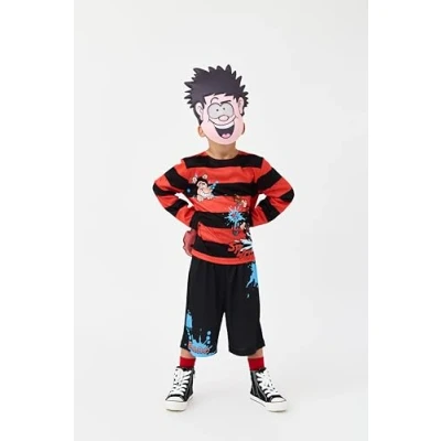 AUTHENTIC COSTUME: Officially licensed Dennis the Menace costume for children, perfect for World Book Day celebrations and fancy dress occasions. AGE RANGE: Suitable for children aged 4-10 years, allowing young fans to transform into the beloved comic book character. UNISEX DESIGN: Versatile costume crafted to be worn comfortably by both boys and girls, making it ideal for school events and parties. DRESS-UP FUN: Perfect for role-play activities, helping children embrace the mischievous spirit of the classic Dennis the Menace character. COSTUME OCCASIONS: Ideal for World Book Day, school performances, costume parties, and other fancy dress events throughout the year., Manufacturer: Blues Group