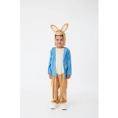 Officially licensed Peter Rabbit full suit costume for children, perfect for imaginative play and special occasions. All-in-one suit with attached soft blue jacket and detachable tail. Including 3D Peter Rabbit character hood with ears andebriodered facial features. Suitable for children aged 3-8 years, designed with comfort and ease of movement in mind. Ideal for World Book Day celebrations, fancy dress parties, school performances, and character role-playing activities. Material & Care: 100% Polyester, exclusive of trims. Machine wash cold inside out - Remove accessories before washing., Manufacturer: Blues Group